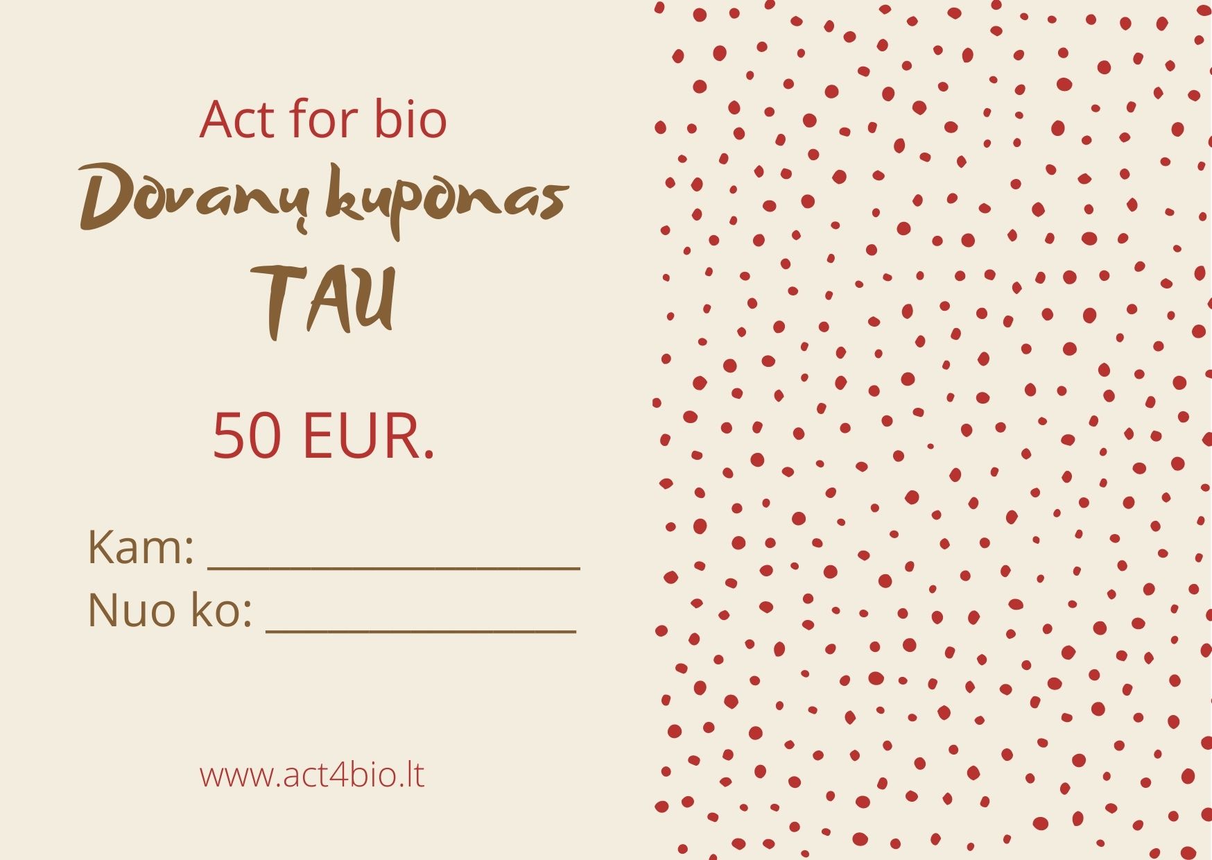 Dovanų kuponas apsipirkimui tinklapyje www.act4bio.lt 50 Eur. sumai.
